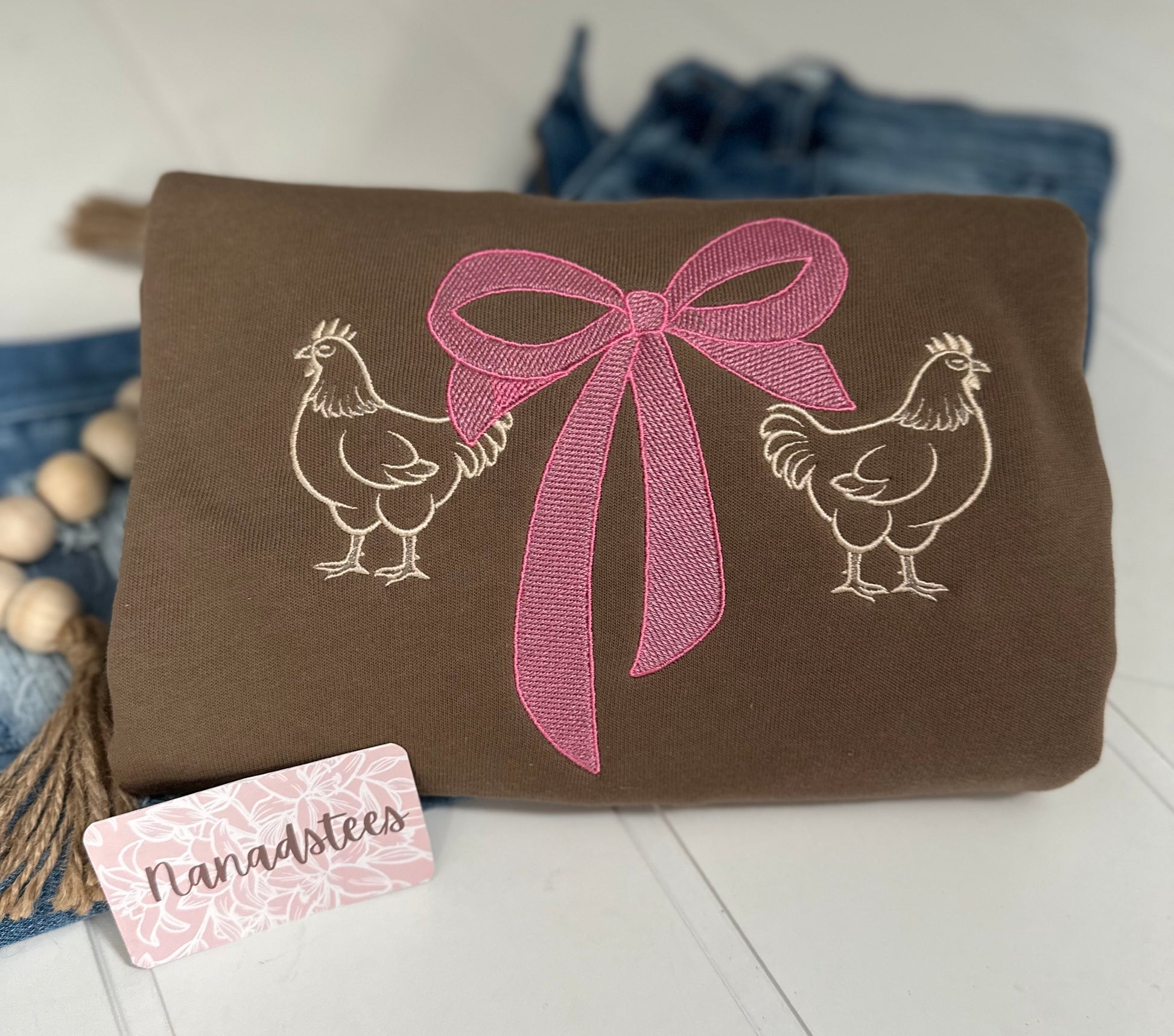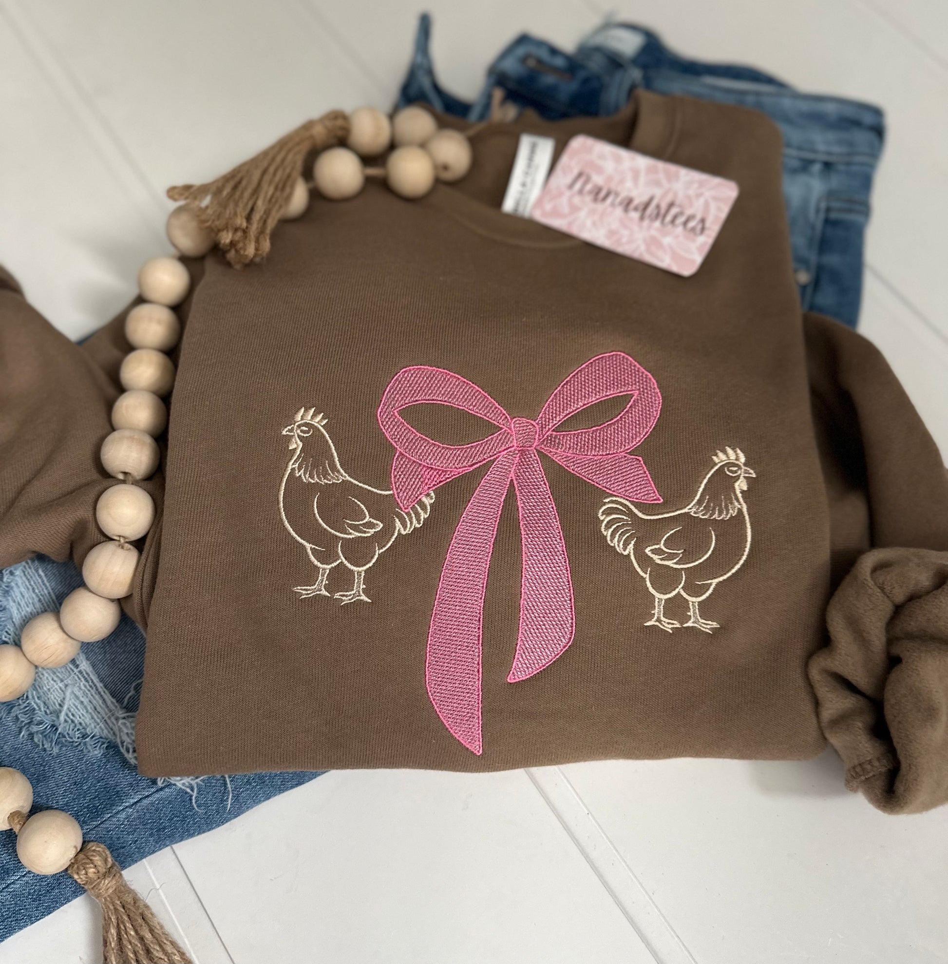 Strut your stuff in this whimsical crewneck sweatshirt featuring adorable chickens and charming bows in soft pink tones. Perfect for animal lovers and anyone who appreciates quirky, feel-good fashion, this cozy pullover brings a playful vibe to your everyday wardrobe. Comfortable enough for lounging, stylish enough for showing off your fun side.