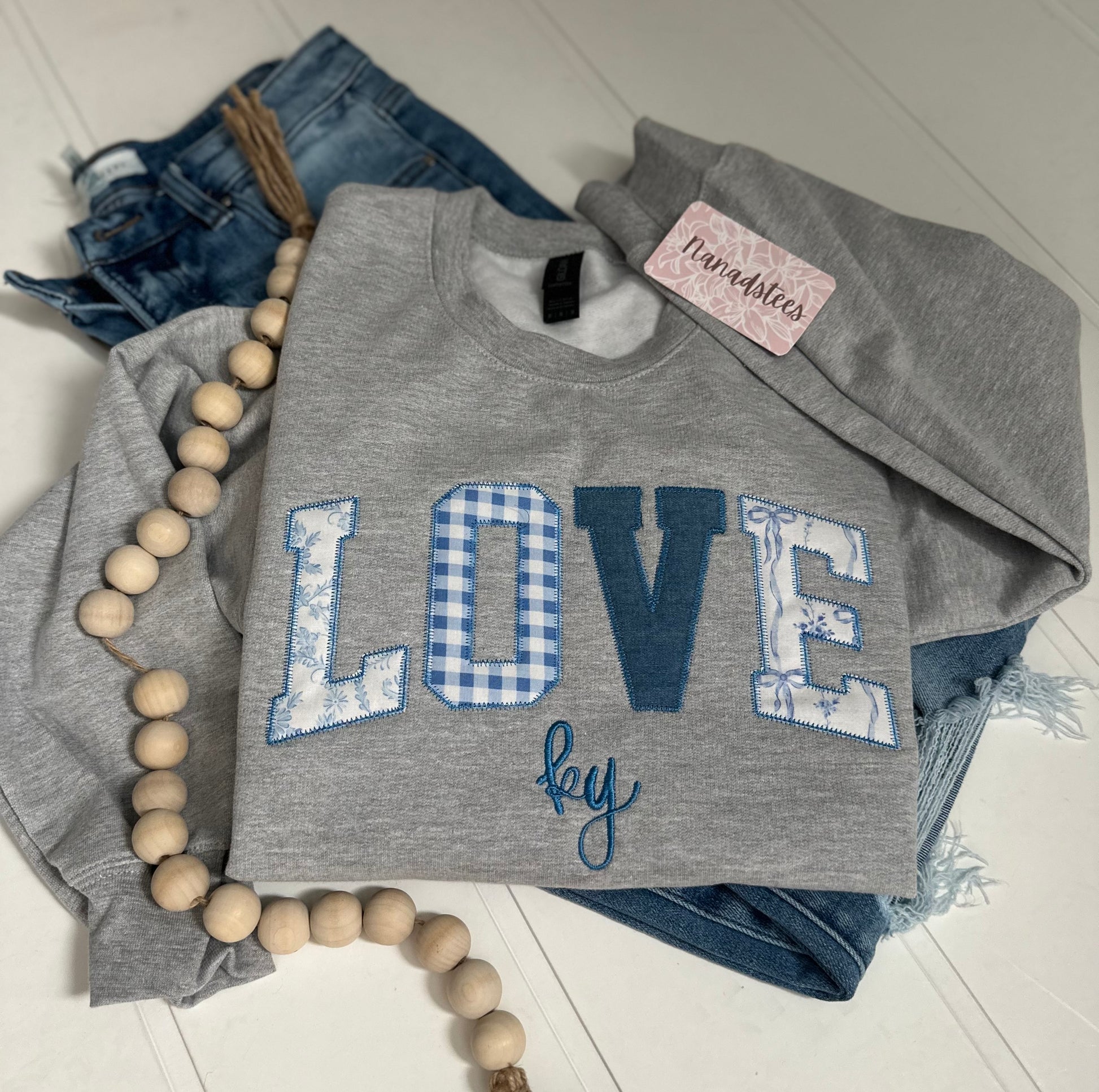 Celebrate your love for the Bluegrass State with this charming crewneck sweatshirt! Featuring a playful appliqué and embroidery design, it's the perfect Valentine's Day gift for Kentucky blues fans. Cozy, comfortable, and full of heart—wear your state pride with style. Ideal for game day, casual outings, or snuggling up with someone special.