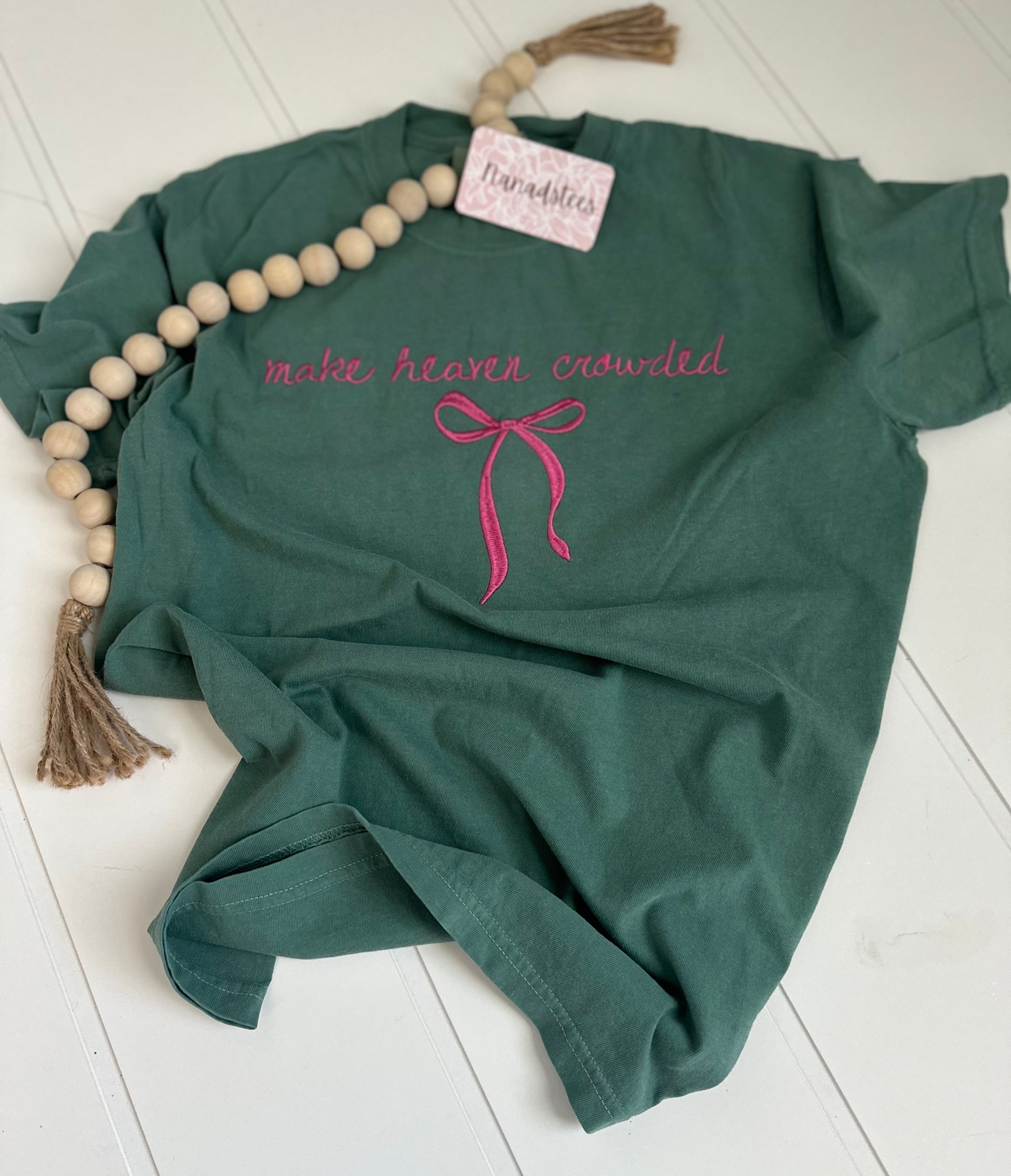 Add a touch of heavenly grace to your outfit with the beautiful Make Heaven Crowded Coquette Bow tee. Expertly crafted with faith and adorned with a delicate bow, this tee is sure to elevate your style and make you stand out from the crowd.