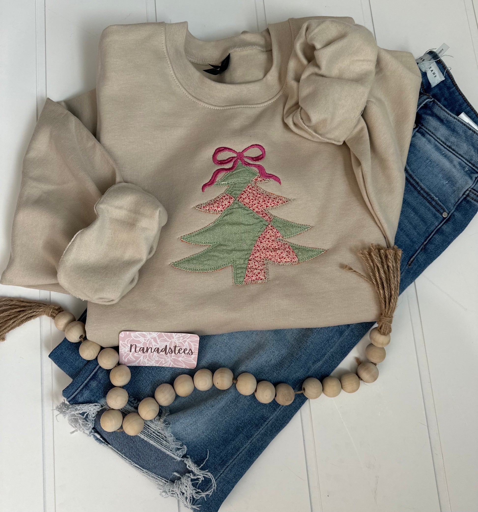 Deck the halls with this delightfully charming Christmas Tree quilt! Featuring a whimsical coquette bow perched atop a beautifully appliquéd tree, this piece blends vintage nostalgia with playful holiday spirit. Intricate embroidery details add texture and warmth, making it the perfect cozy companion for festive gatherings or a treasured heirloom-in-the-making. Spread joy and vintage-inspired cheer with every snuggle.