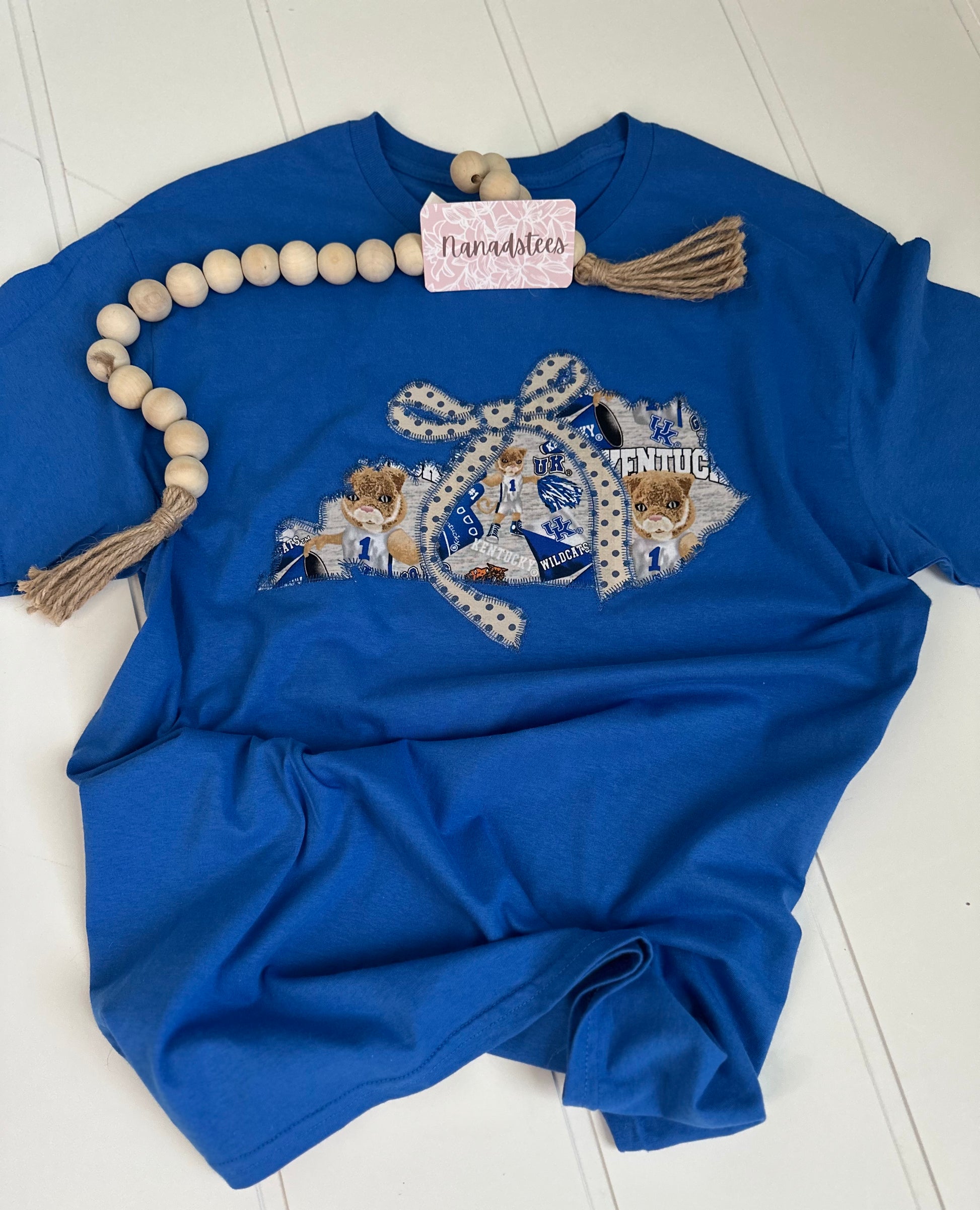 Celebrate your Kentucky Wildcat spirit with this playful t-shirt featuring a charming coquette bow applique and detailed embroidery. Soft and cozy, it’s perfect for game days or casual fun, letting you show off your mascot pride in style and comfort.